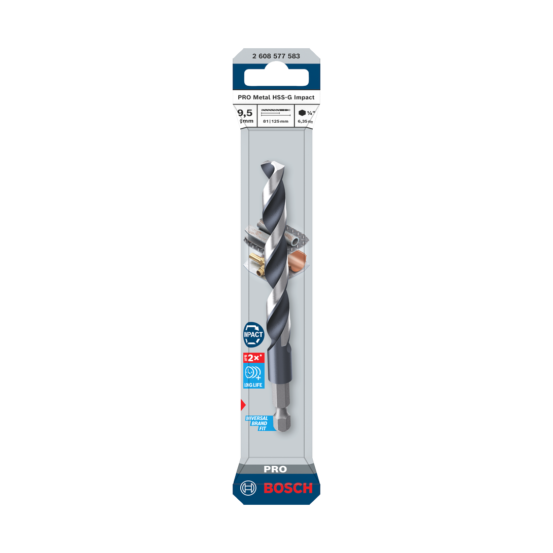 Professionelle Metallbohrer aus HSS-G Stahl mit Impact-Technologie für Schlagbohrmaschinen. Diese robusten Spiralbohrer durchdringen Stahl und Metalllegierungen mit präziser Geometrie und optimaler Spanabfuhr. Die verstärkte Stahlformulierung widersteht hohen Temperaturen und wiederholten Schlagbelastungen. Zuverlässige Wahl für anspruchsvolle Handwerks- und Industrieanwendungen, wo Präzision und Dauerhaftigkeit entscheidend sind.