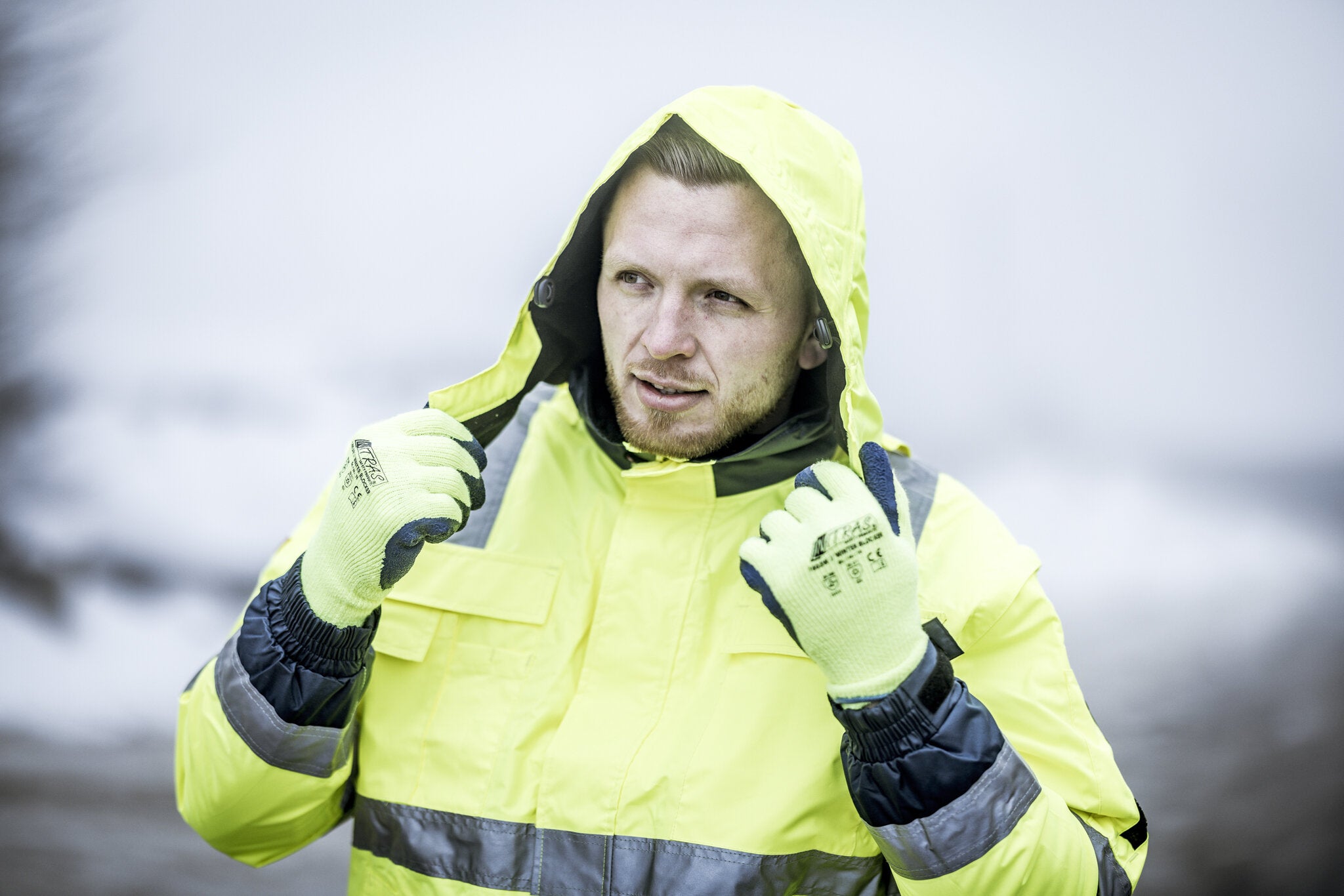 NITRAS WINTER BLOCKER, Winterhandschuhe, nahtloses Terry-Schlingengewebe innen, neongelb, Latex-Beschichtung, blau (Farbcode: 4022), teilbeschichtet auf Innenhand und Fingerkuppen, schrumpfgeraut, Strickbund, höchster Tragekomfort, höchste Fingerfertigkeit, sehr rutschfest, perfekter Grip, sehr gutes Tastempfinden, sehr guter Trocken- und Nassgriff, Schutz gegen niedrige Temperaturen, PSA-Risikokategorie II