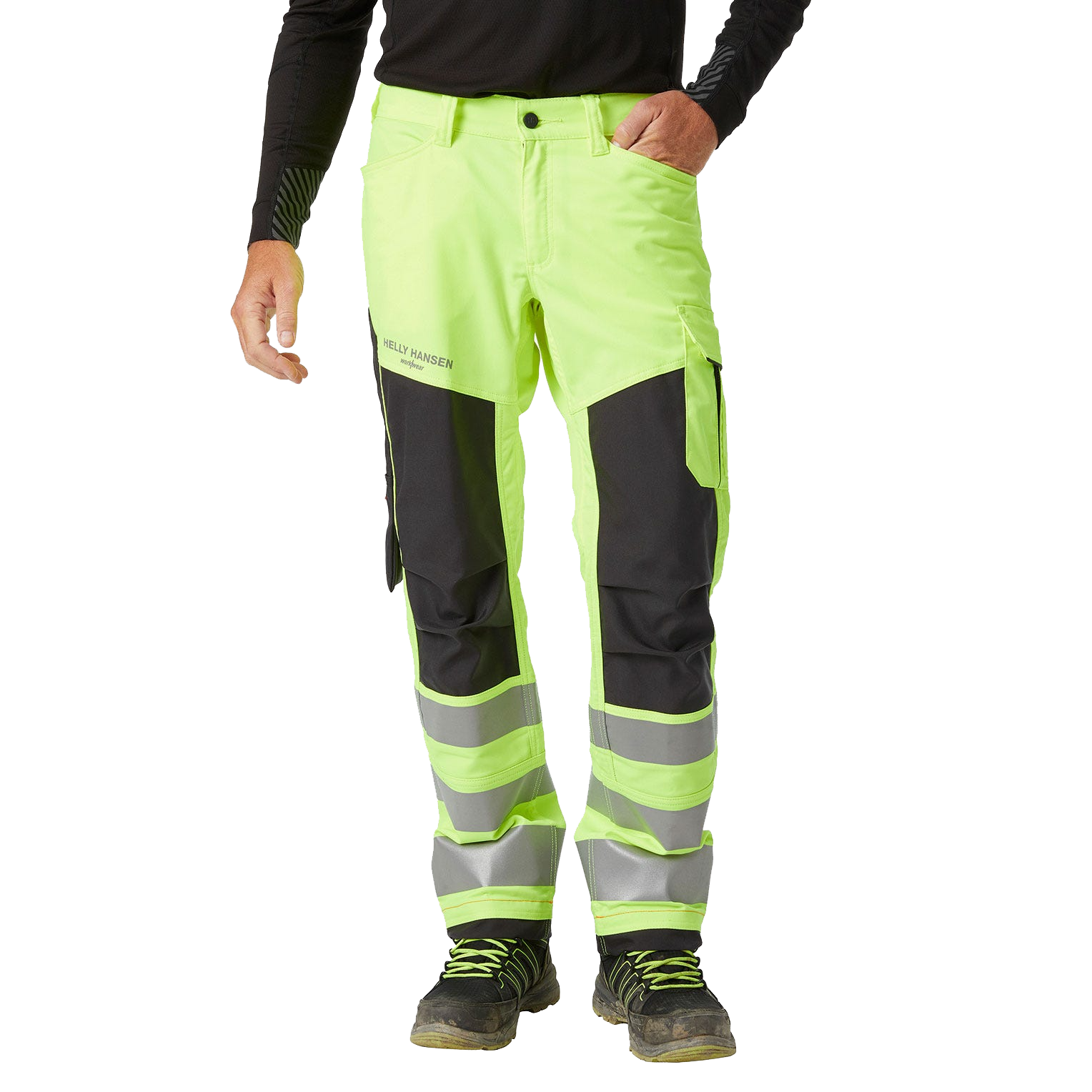 Mit einer multifunktionalen Tasche am Oberschenkel, Transferdruck-Reflexstreifen und Stretch-Gewebe für eine bessere Passform ist die Alna Work Hose 2.0 Class 1 die perfekte Wahl für alle, die während der Arbeit Wert auf Komfort, Sicherheit und optimale Sichtbarkeit legen.