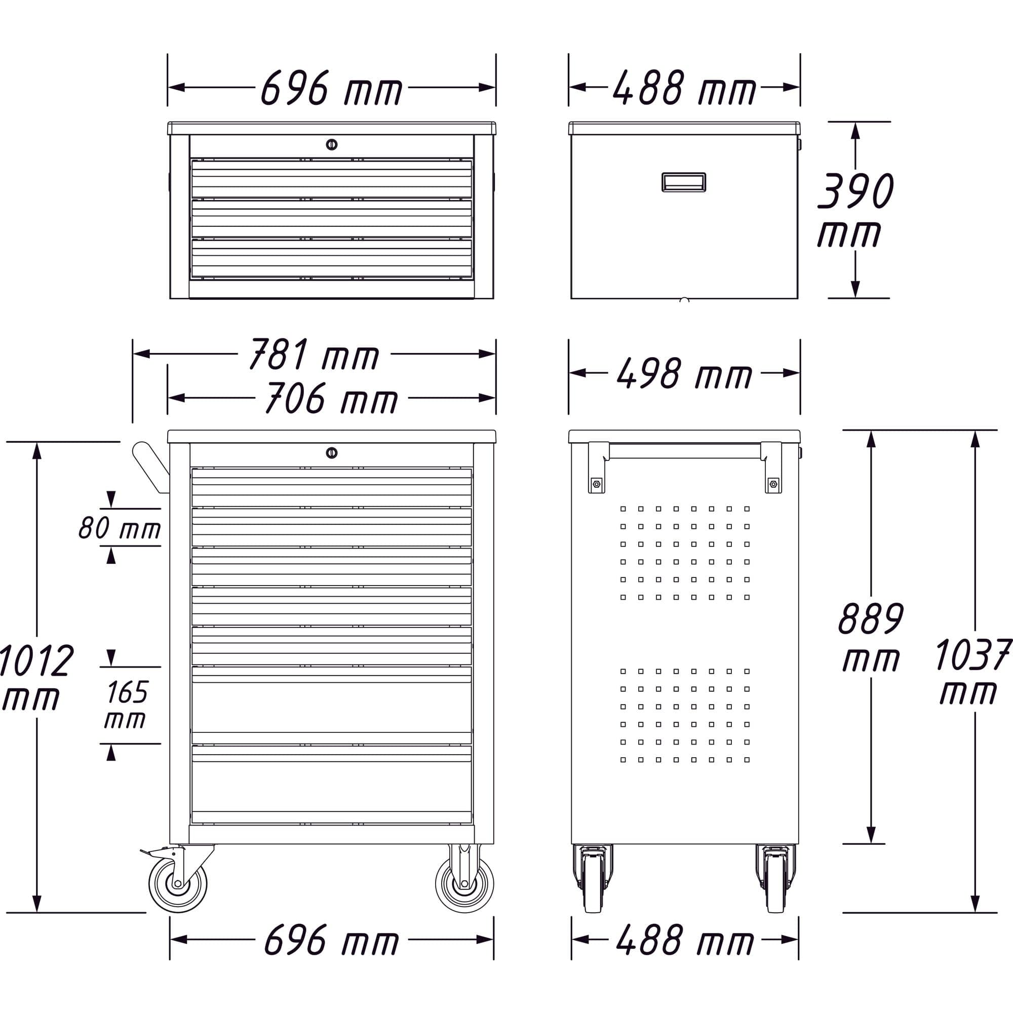 696 mm x 488 mm x 390 mm