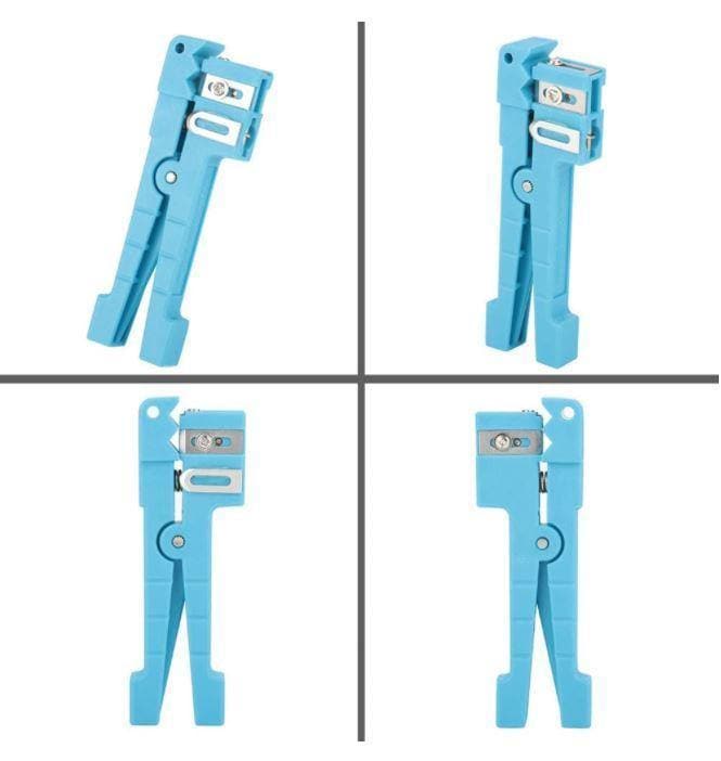 Dieser faseroptische Pufferrohrabstreifer verfügt über einstellbare Klingen, die Sie für jede Tiefe einstellen können, um einen einschnittfreien Manteleintritt in faseroptische Pufferrohre zu gewährleisten.