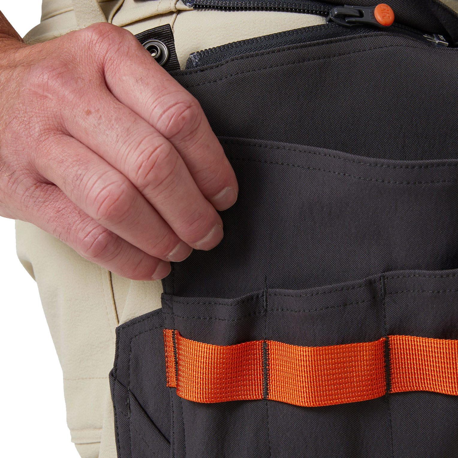 Zu den professionellen Details gehören eine breite Gürtelschlaufe in der Mitte des Rückens, kunststoffummantelte Metallknöpfe und Stretch-Cordura®-Verstärkungen am unteren Saum. Oberschenkeltaschen mit YYK-Reißverschlüssen und Klettverschlüssen halten Ihre Gegenstände griffbereit. Durchdachte Details wie eine Ausweisschlaufe, eine integrierte Handytasche und reflektierende Details machen diese Cargoshorts zu einem Muss für jeden Arbeitsplatz.