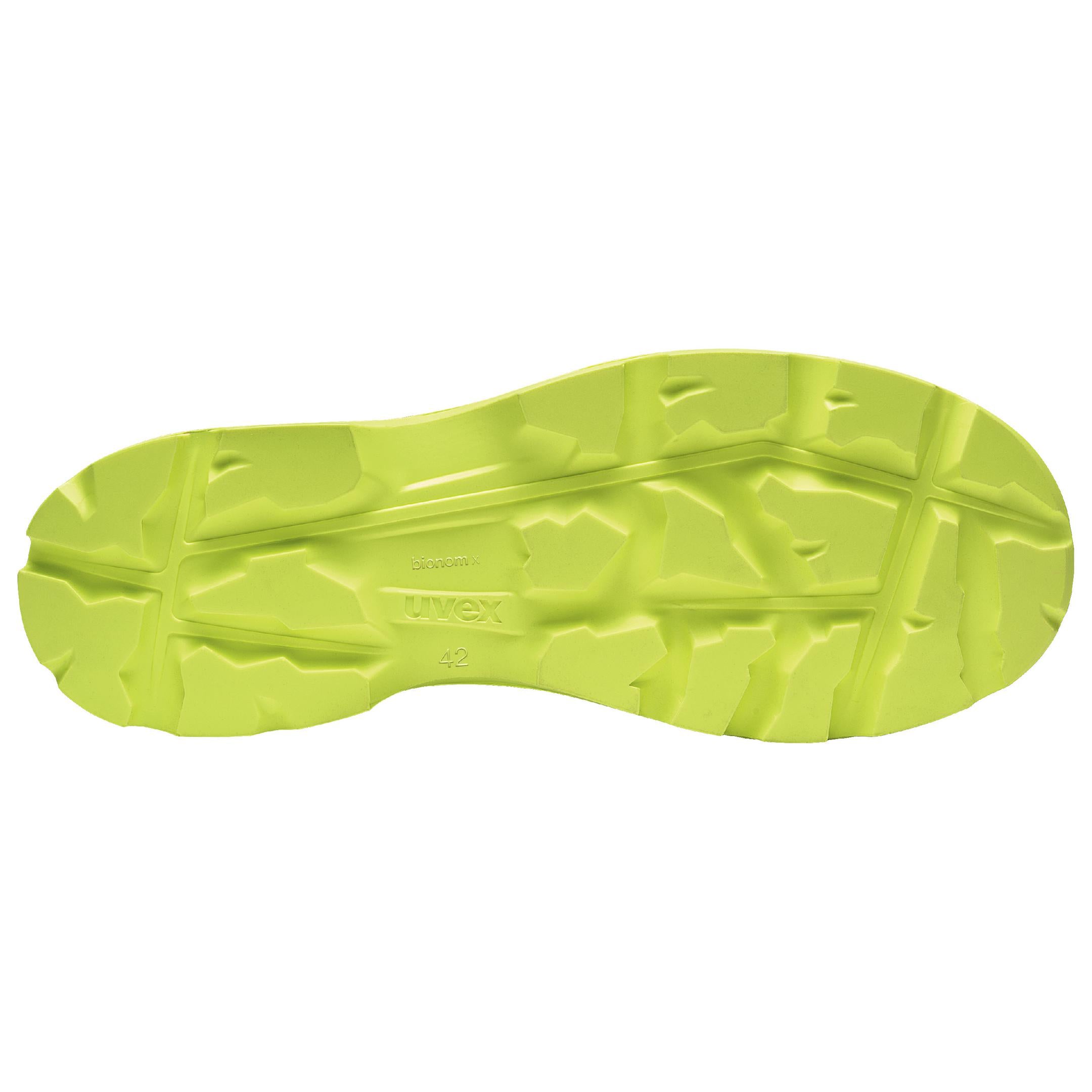 - innovatives uvex bionom x Design bildet eine biomechanische Symbiose zwischen Fuß, Schuhoberteil, Sohle und Boden